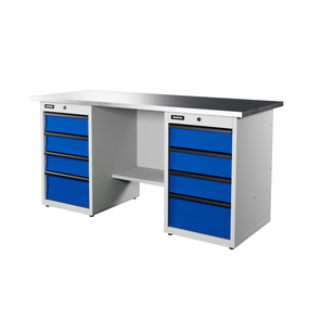 Верстак серии Industrial, 1700 мм, оцинк, тумба с 4-мя ящиками + тумба с 4-мя ящиками, синий (светло-серый) RAL 5005 (70