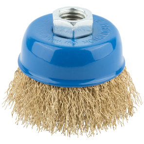 Корщетка-чашка, гайка М14, стальная латунированная волнистая проволока 65 мм, блистер