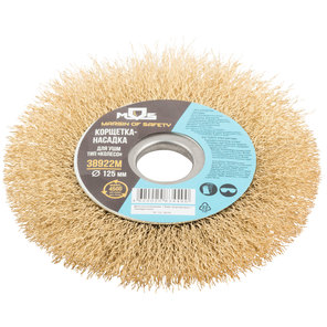 Корщетка-колесо с наклоном, гайка М14, стальная латунированная волнистая проволока 125 мм, блистер