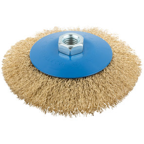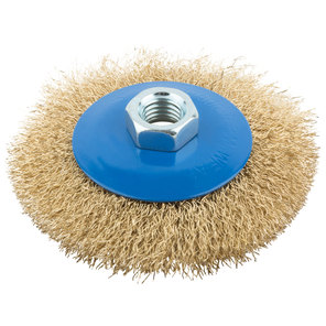 Корщетка, тип "чашка", гайка М14, стальная латунированная волнистая проволока 125 мм