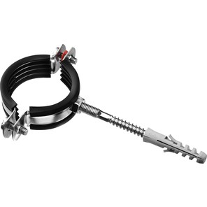 Хомут трубный с гайкой, оцинкованный, в комплекте с сантехнической шпилькой и дюбелем, 1 1/2″, 1 шт