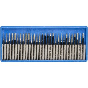 Набор мини-насадок с алмазным напылением в пластиковом боксе P 180 хвостовик диаметр 3 мм 30 пр