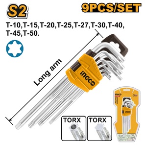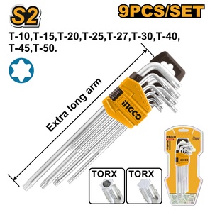 Набор Г-образных ключей, с фиксацией, удлиненные, 9 пр., TX 8/9/10/15/20/25/27/30/40