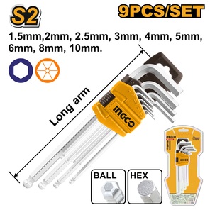 Набор ключей имбусовых HEХ, 1,5–10 мм, S2, магнит, экстра-длин. с шаром, хром/краска, 9 шт