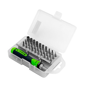 Отвертка реверсивная для точных работ с набором бит и торцевых головок, 32 предм., CrV