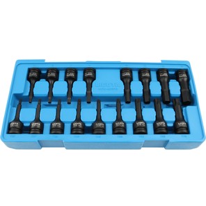 Ударные головки – это разновидность торцевых головок, созданная специально для пневмогайковертов. Отличие ударных головок от обычных заключается в том, что они производятся из особо прочных сплавов стали (как правило – хромомолибденовых), предназначенных именно для динамических нагрузок. Обычные головки не способны «держать удар», и быстро расколются при интенсивном применении. Профессиональные ударные головки применяются для скручивания болтов и гаек под высокой нагрузкой при помощи пневматического гайковерта. Поскольку разновидностей и размеров ударных головок огромное множество, то большинство производителей выпускает их наборами. Наборы головок – идеальный выбор для шиномонтажа или промышленного производства.