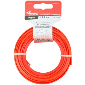 Леска для садовых триммеров усиленная, полиамидная жила, "Квадрат" 3,0 мм х 15 м