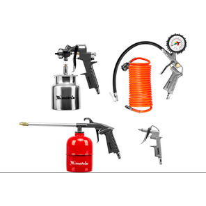 Набор для покраски к компрессору, 5 предм., с быстросъемн. соед., краскораспылитель с нижним бачком