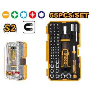 Отвертка реверсивная с набором бит, 55 шт