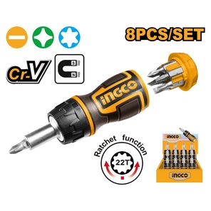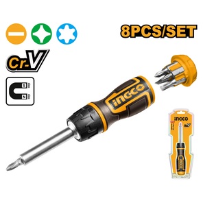 Отвертка с реверсивным механизмом с набором бит 8 шт
