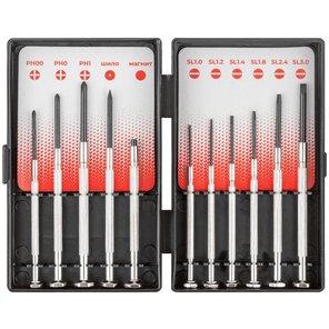 Отвертка с битами для точных работ, 33 CrV биты, гибкий переходник 175 мм, лупа, пластиковый бокс
