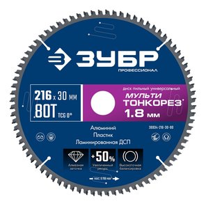 Диск пильный Мульти Тонкорез универсальный, 216х30х1.8 мм, 80Т, Профессионал