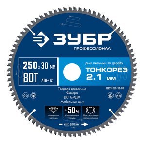 Диск пильный Тонкорез по дереву, 250х30х2.1 мм, 80Т, Профессионал