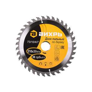 Диск пильный по дереву 210х30 мм, 36 зубьев+кольца 16/30, 20/30