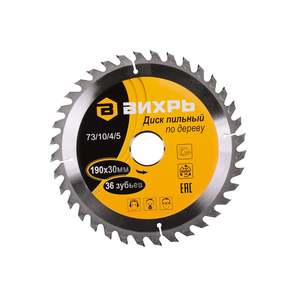 Диск пильный по дереву 190х30 мм, 36 зубьев+кольца 16/30, 20/30