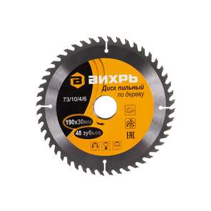 Диск пильный по дереву 190х30 мм, 48 зубьев+кольца 16/30, 20/30