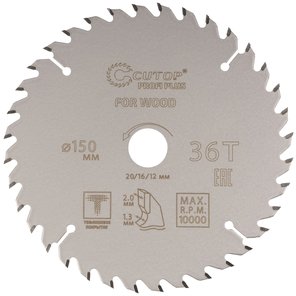 Диск пильный по дереву с тефлоновым покрытием 36Т, Profi plus, 150х1,3/2,0х20/16/12 мм