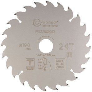 Диск пильный по дереву с тефлоновым покрытием 24Т, Profi plus, 190х1,5/2,2х30/25,4/20/16 мм