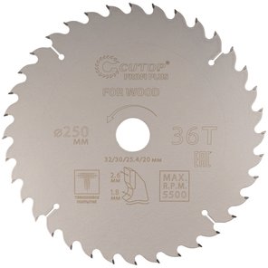 Диск пильный по дереву с тефлоновым покрытием 36Т, Profi plus, 250х1,8/2,6х32/30/25,4/20 мм