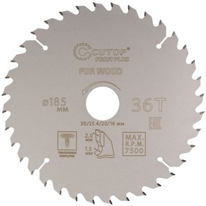 Диск пильный по дереву с тефлоновым покрытием 36Т, Profi plus, 185х1,3/2,0х30/25,4/20/16 мм