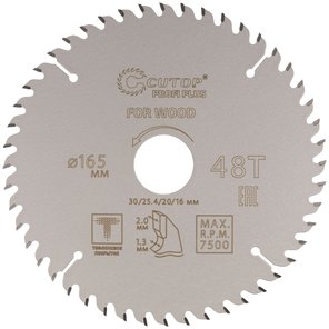 Диск пильный по дереву с тефлоновым покрытием 48Т, Profi plus, 165х1,3/2,0х30/25,4/20/16 мм