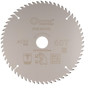 Диск пильный по дереву с тефлоновым покрытием 60Т, Profi plus, 230х1,6/2,4х32/30/25,4/20 мм