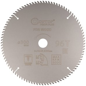 Диск пильный по дереву с тефлоновым покрытием 96Т, Profi plus, 300х2,0/3,0х32/30/25,4/20 мм