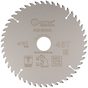 Диск пильный по дереву с тефлоновым покрытием 48Т, Profi plus, 185х1,3/2,0х30/25,4/20/16 мм