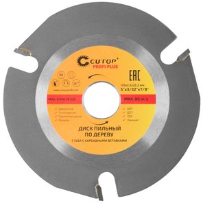 Диск пильный по дереву для УШМ, 3 зуба с карбидными вставками Cutop Profi Plus 125x2,2x22,2 мм