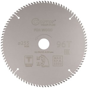 Диск пильный по дереву с тефлоновым покрытием 96Т, Profi plus, 255х1,8/2,6х32/30/25,4/20 мм