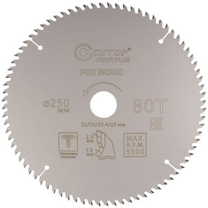 Диск пильный по дереву с тефлоновым покрытием 80Т, Profi plus, 250х1,8/2,6х32/30/25,4/20 мм