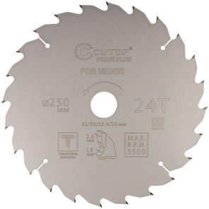 Диск пильный по дереву с тефлоновым покрытием 24Т, Profi plus, 250х1,8/2,6х32/30/25,4/20 мм