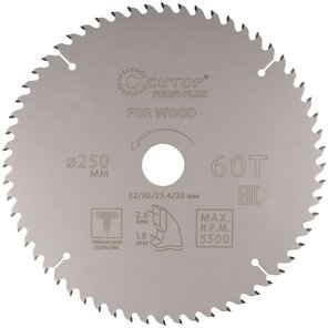 Диск пильный по дереву с тефлоновым покрытием 60Т, Profi plus, 250х1,8/2,6х32/30/25,4/20 мм