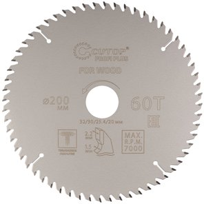 Диск пильный по дереву с тефлоновым покрытием 60Т, Profi plus, 200х1,5/2,2х32/30/25,4/20 мм