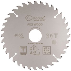 Диск пильный по дереву с тефлоновым покрытием 36Т, Profi plus, 165х1,3/2,0х30/25,4/20/16 мм