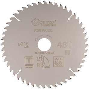 Диск пильный по дереву с тефлоновым покрытием 48Т, Profi plus, 216х1,5/2,2х32/30/25,4/20 мм