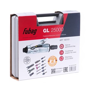 Пневмошлифмашина прямая GL25000 (103 л/мин_6бар_25000об/мин) + набор