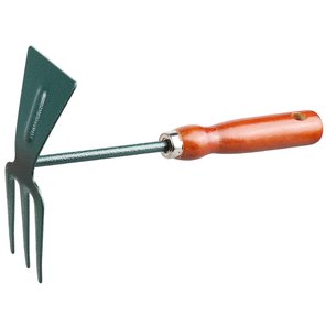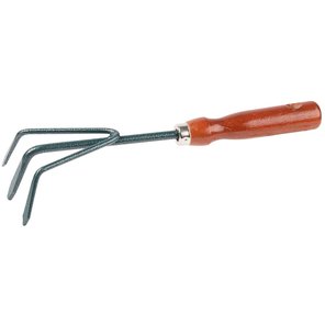 Мотыжка садовая 250 мм 3 зубца углеродистая сталь прямое лезвие деревянная ручка