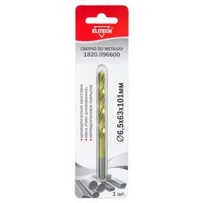 Сверло спиральное по металлу 6,5х63х101 мм, HSS-G TiN