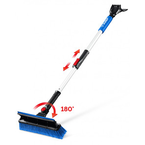 Щетка со скребком телескопическая для удаления снега и льда с мягкой ручкой (102-140 см)