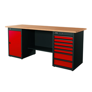 Верстак серии Industrial, 2000 мм, фанера, тумба с 7-ю ящиками + тумба с дверью, красный RAL 3020