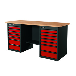 Верстак серии Industrial, 1700 мм, фанера, тумба с 7-ю ящиками + тумба с 7-ю ящиками, красный RAL 3020