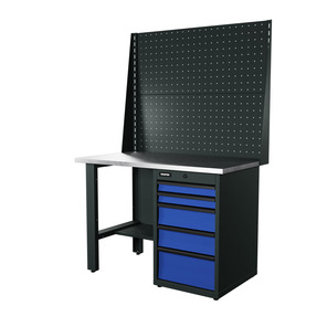 Верстак серии Industrial, 1200 мм, фанера, тумба с 4-мя ящиками, синий (светло-серый) RAL 5005 (7035)