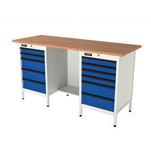 Верстак серии Standart, 1600 мм, фанера, тумба с 5-ю ящиками + тумба с 6-ю ящиками, синий (светло-серый) RAL 5005 (7035)