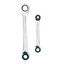 Набор многоразмерных накидных реверсивных ключей с трещоткой Gross 14893 включает 2 инструмента из стали CrV, предназначенных для монтажа и демонтажа крепежа размером 8-19 мм. Каждый из них может заменить сразу 4 ключа, т.к. имеет две накидные рабочие головки с 4 захватами — 8 х 10 мм и 12 х 13 мм у первого ключа и 14 х 17 мм и 18 х 19 мм у второго. 12-гранный профиль позволяет надежно захватывать крепеж. Наличие реверса упрощает работу с резьбовыми соединениями. Набор подходит как для профессионального, так и для самостоятельного ремонта автомобилей.